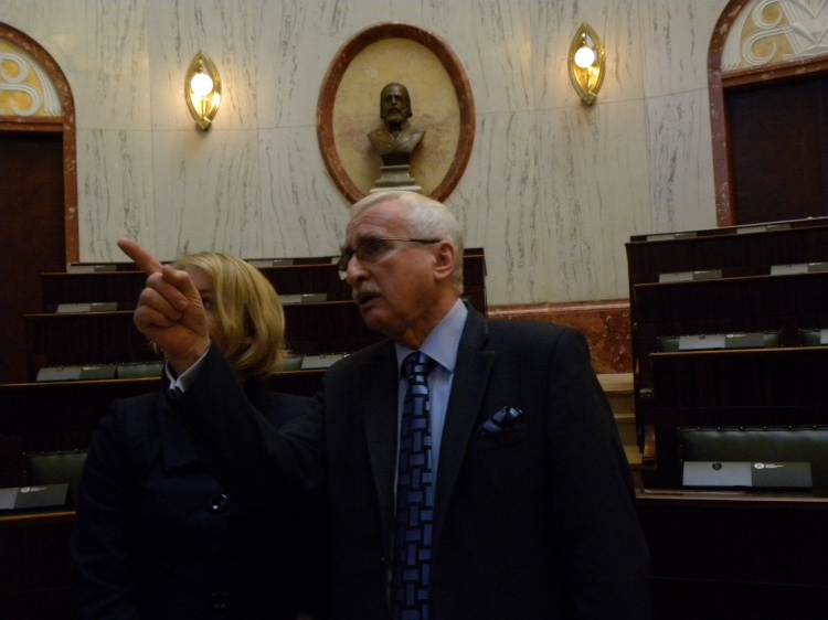 Andrzej Gościniak przypomniał, że prace nad rewitalizacją Sejmu rozpoczęły się w marcu br.. Najpierw wyremontowano został elipsoidalny świetlik. Potem przyszedł czas na renowację ścian i ozdób, a następnie na podłogi, prezydium i wyposażenie. Wszystkie prace odbywały się pod nadzorem Wojewódzkiego Konserwatora Zabytków. Ich celem było przywrócenie historycznego stanu Sali i dostosowanie jej do wymogów nowoczesnego procedowania. Prace były bardzo interesujące i pełne nieoczekiwanych zwrotów. W trakcie prac rozbiórkowych nad częścią amfiteatralną pracownicy natrafili na pozostałości pierwotnych obić foteli oraz tapet. Spowodowało to zmianę kolorystyki foteli na ciemnozieloną, jaka była w dniu oddania Sali.