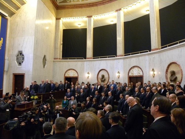 Obrady otworzyła radna senior Maria Potępa. I sesja Sejmiku Śląskiego V Kadencji rozpoczęła się od Hymnu RP. Następnie Andrzej Czaputa SSO Przewodniczący Wojewódzkiej Komisji Wyborczej wręczył zaświadczenia o wyborze na radnego.