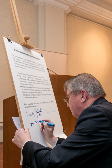 „Abyśmy mogli ograniczyć problem zanieczyszczonego powietrza w Polsce, konieczne jest współdziałanie wszystkich – nie tylko tych sprawujących władzę, lecz także osób prywatnych. To od naszych codziennych decyzji w dużej mierze zależy, czy powietrze w okolicy jest czyste, czy nie. Chcąc podkreślić, że ochrona powietrza to zadanie i obowiązek nas wszystkich, podpisaliśmy dziś wspólnie porozumienie na rzecz czystego powietrza” – mówi minister środowiska.