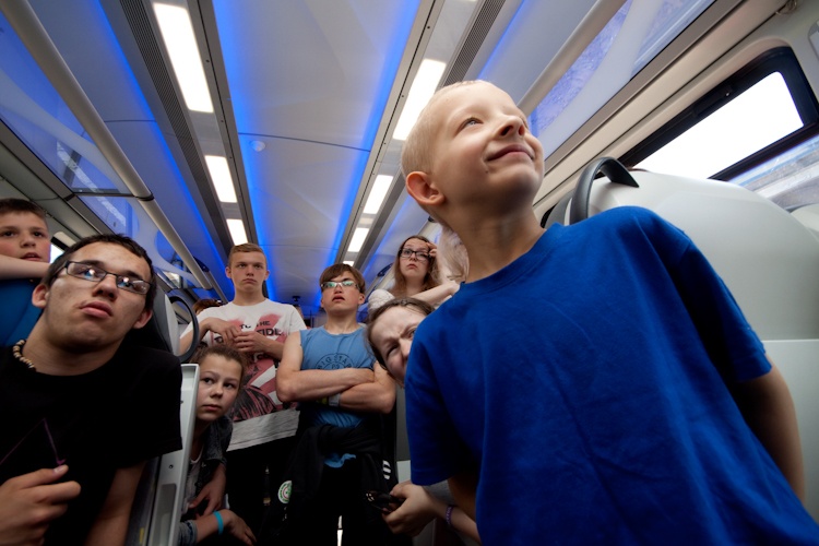 Mogły one wejść do niedostępnej dla pasażerów kabiny maszynisty tego nowoczesnego pociągu oraz zadawać pytania załodze składu. Atrakcją był krótki wykład funkcjonariuszy Służby Ochrony Kolei na temat bezpiecznego zachowania się na torach. Przyprowadzili oni także psa tropiącego. Dzieci otrzymały materiały promocyjne z Urzędu Marszałkowskiego oraz przewoźnika.