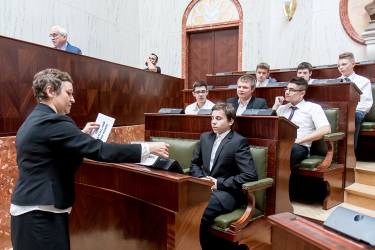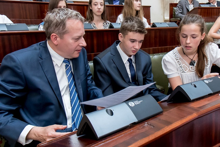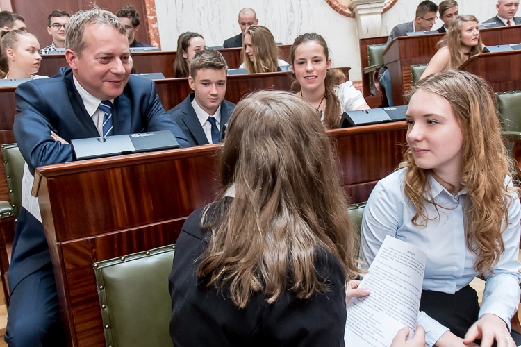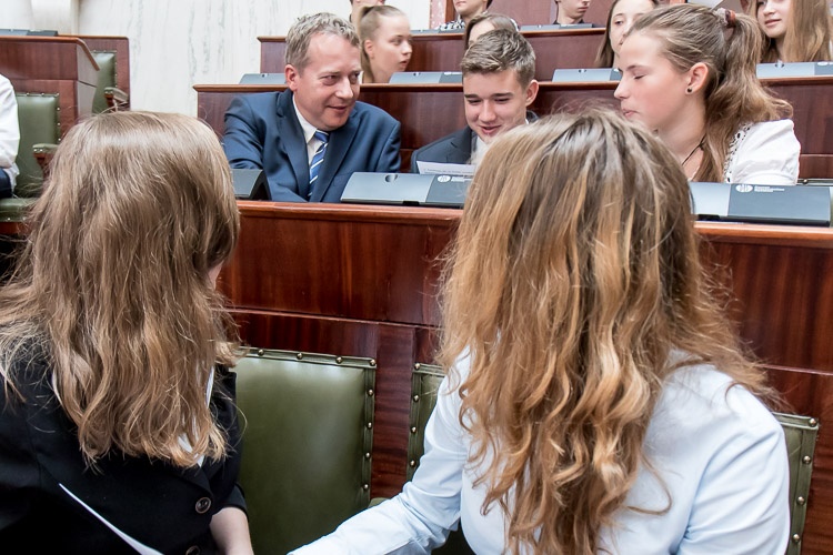 W lekcji udział wziął marszałek Wojciech Saługa. „Cieszę się, że mogę was gościć w ramach lekcji samorządowej w historycznym gmachu, w pięknej Sali Sejmu Śląskiego. Nie ma chyba lepszego miejsca w województwie śląskim, a może i w całej Polsce, by mówić o samorządności. Jestem przekonany, że dzisiejsze spotkanie, ta oryginalna lekcja uświadomi wam, że to, jak wyglądają dzisiaj nasze miasta czy gminy, możliwe jest w głównej mierze dzięki reformie samorządowej. Na tym polega siła społeczeństwa obywatelskiego – na uprawnieniu do kształtowania naszej wspólnej przyszłości. Możliwość decydowania o swoich sprawach i podejmowania decyzji, których źródłem jest zasada samorządności, jest wielką wartością” – mówił do młodzieży marszałek Saługa.