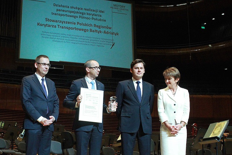 Stowarzyszenie Polskich Regionów Korytarza Transportowego Bałtyk–Adriatyk został laureatem nagrody Motory Polskiej Logistyki 2015. Wyróżnienia zostały wręczone podczas Europejskiego Kongresu Logistycznego ONECARGO w Katowicach.