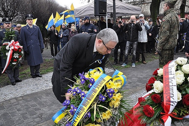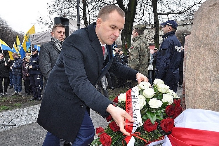 „Zebraliśmy się tu w szczególnym miejscu i w szczególnym czasie, aby dać świadectwo prawdzie tamtych listopadowych dni sprzed 70 lat. Prawdzie o czasach mrocznych i złych, o czasach śmierci i cierpienia. Dzisiaj ten pomnik wyrwany z otchłani ziemi woła o pamięć tych, którzy zginęli. Naszym obowiązkiem jest pamiętać i szerzyć wiedzę” – powiedział podczas uroczystości Dawid Kostempski, prezydent miasta.