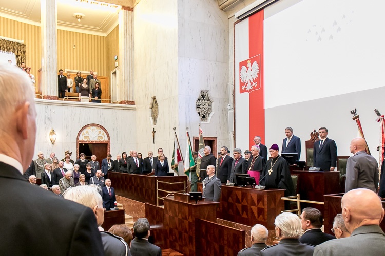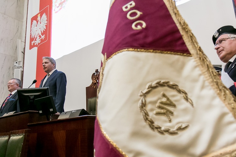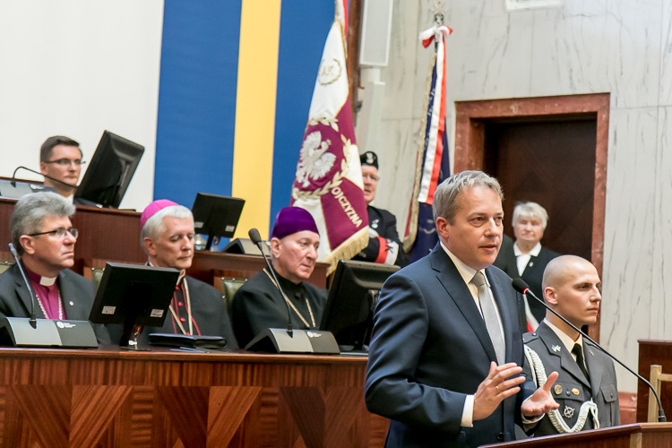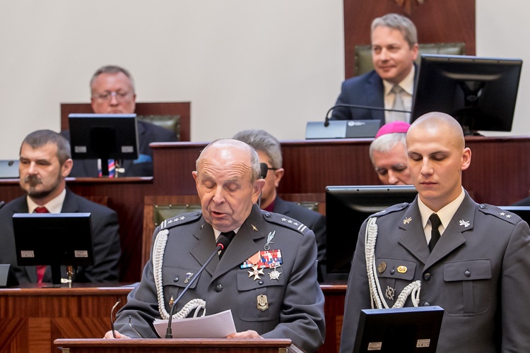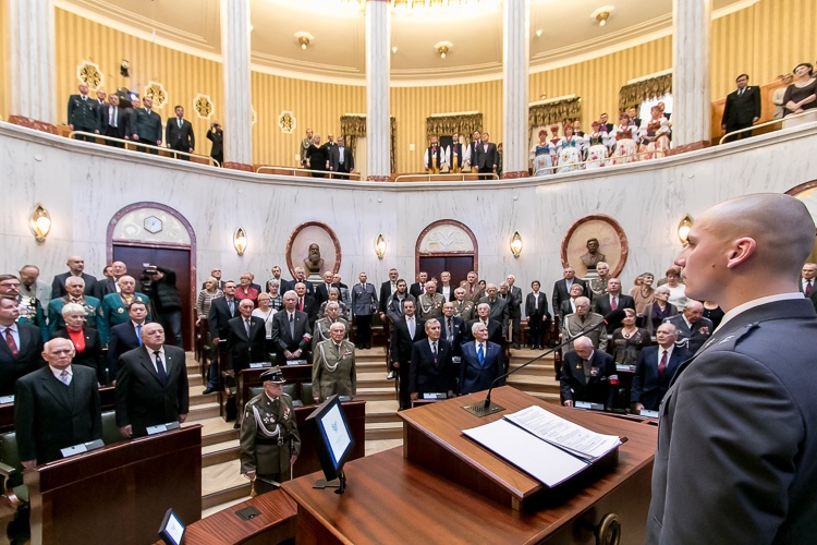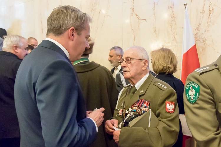 „Tak liczna obecność podczas dorocznego spotkania kombatantów dowodzi ogromnego szacunku, jakim cieszy się to środowisko. Dzięki wam możemy przeżywać te chwile w komfortowych warunkach, w pokoju i bezpieczeństwie. Niepodległość nie jest dana raz na zawsze, stąd musimy pamiętać, że każdy dzień jest wyzwaniem, by pracować dla dobra kraju, biorąc przykład z tu obecnych. Życzę nam wszystkim, byśmy byli dumni z naszej ojczyzny i cieszyli się wolnością i pokojem” – powiedział marszałek Wojciech Saługa.