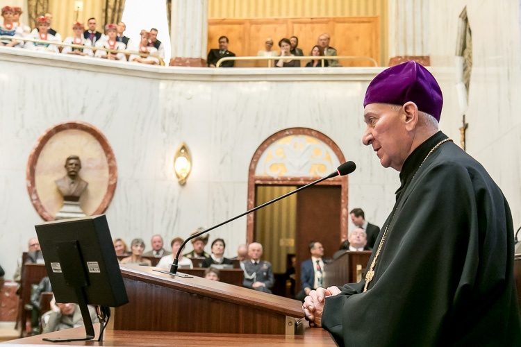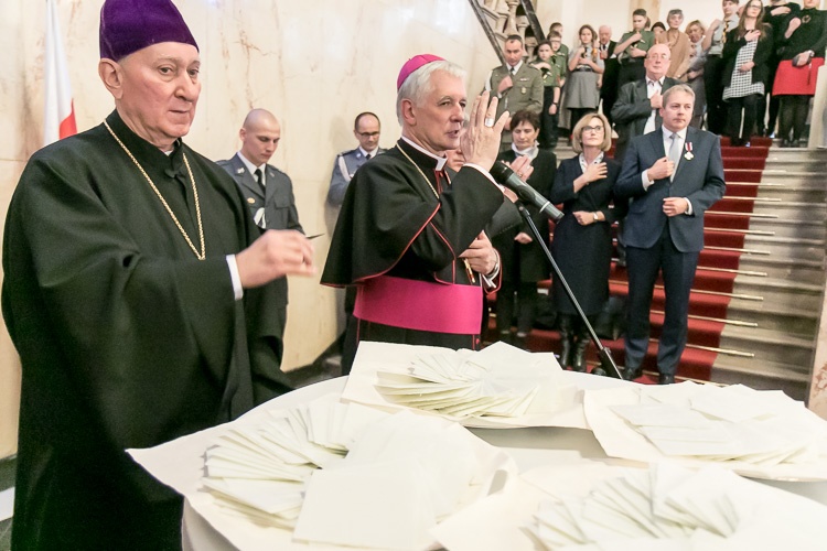 Modlitwę ekumeniczną zmówili bp pomocniczy archidiecezji katowickiej Marek Szkudło, zwierzchnik diecezji katowickiej kościoła ewangelicko-augsburskiego bp Marian Niemiec oraz proboszcz kościoła prawosławnego ks. płk mitrat Sergiusz Dziewiatowski.