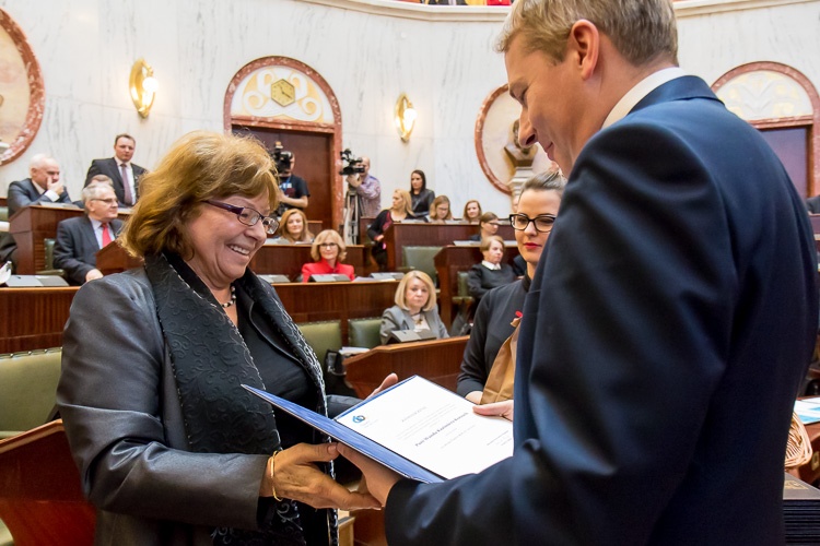 Wręczenie zaświadczeń o wyborze w skład Śląskiej Rady ds. Seniorów odbyło się w trakcie grudniowej sesji Sejmiku Województwa Śląskiego. Każdy z członków Rady odebrał zaświadczenie o wyborze z rąk marszałka Wojciecha Saługi.