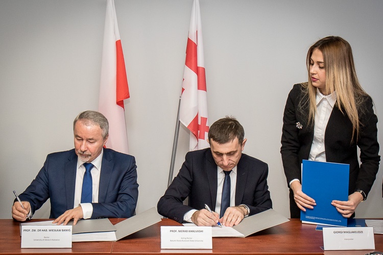 Umowę o współpracy naukowo-dydaktycznej podpisali rektorzy obu uczelni Wiesław Banyś i Merab Khalvashi. W spotkaniu uczestniczył również członek Zarządu Województwa Śląskiego Kazimierz Karolczak.