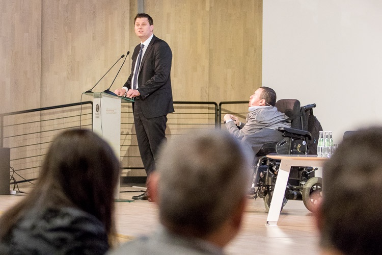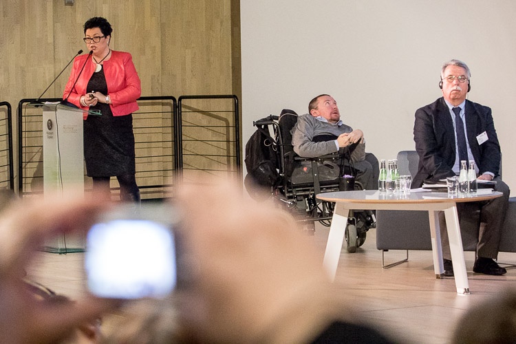 Thorsten Klute przedstawił w trakcie konferencji doświadczenia związane z wdrażaniem Konwencji ONZ o prawach osób niepełnosprawnych w Nadrenii Północnej-Westfalii, która jest jednym z pionierów w tym zakresie w Niemczech. Spośród 18 mln mieszkańców landu ok. 2,8 mln osób to osoby z orzeczeniem o niepełnosprawności. „Ideą przewodnią jest włączenie społeczne osób niepełnosprawnych, ale z poszanowaniem ich autonomii. Nie traktujemy niepełnosprawności jako kwestii marginalnej, staramy się nawiązywać do idei współdziałania ludzi bez względu na różnice i ograniczenia. To powinno być kompleksowe działanie w wielu obszarach, od polityki społecznej, przez aspekty prawne, po politykę w zakresie rynku pracy” – przekonywał Thorsten Klute.