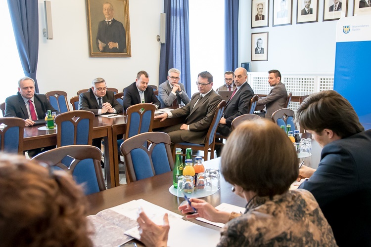 Prezydenci i wiceprezydenci czterech miast: Katowic, Mysłowic, Jaworzna i Sosnowca spotkali się w Urzędzie Marszałkowskim, by przedstawić założenia związane z realizacją DTŚ Wschód