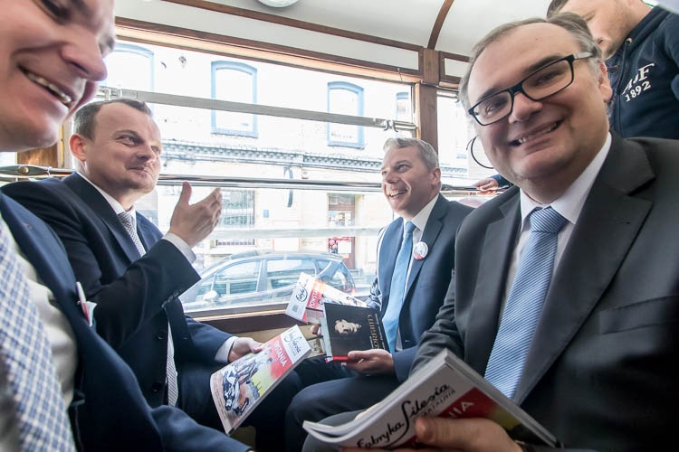 Pierwszy kurs powstańczego tramwaju odbył się dzisiaj, a w inauguracyjną trasę ruszyli przedstawiciele władz samorządowych z Marszałkiem Województwa Śląskiego Wojciechem Saługą i prezydentami Świętochłowic i Sosnowca.