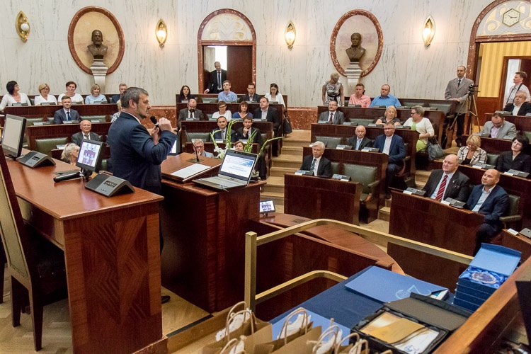 „Ten jubileusz to odpowiednia chwila na podziękowanie za porządną pracę. Dzięki wam Wojewódzki Ośrodek Dokumentacji Geodezyjnej i Kartograficznej w Katowicach jest jednym z najlepszych, o ile nie najlepszym ośrodkiem w kraju” – powiedział wicemarszałek Stanisław Dąbrowa, otwierając jubileuszowe seminarium.