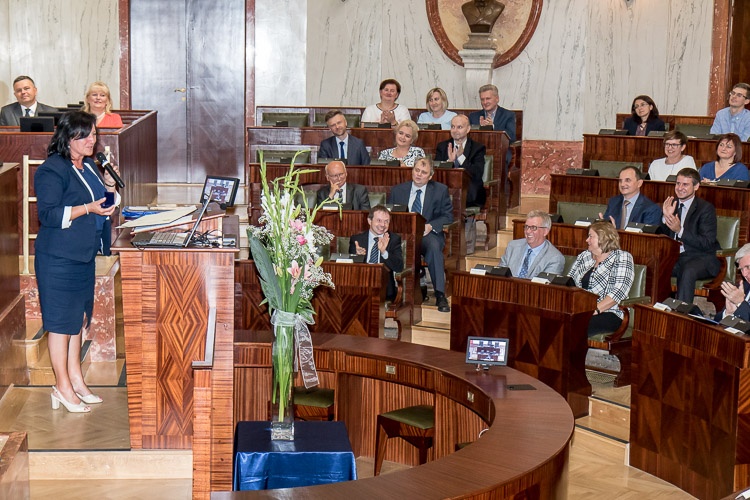 Podczas seminarium przewodniczący Sejmiku Województwa Śląskiego Grzegorz Wolnik wręczył Złotą Odznaką „Zasłużony dla Województwa Śląskiego”.