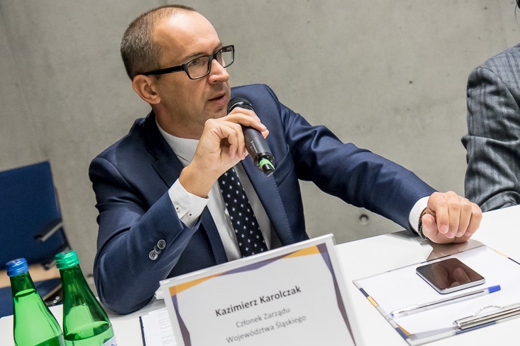 Do słów przedmówcy ze Stanów Zjednoczonych odniósł się także Kazimierz Karolczak, który wskazał na specyficzne problemy polskiego górnictwa. „Województwo śląskie nie ma takich możliwości budowania narzędzi związanych z górnictwem i branżą okołogórniczą jak stan Nevada. My musimy opierać się na programach rządowych, które często opracowywane są z dala od nas. Dysponujemy jednak dużymi środkami europejskimi, które w obecnej perspektywie przeznaczamy właśnie na innowacyjne technologie i wsparcie w tej dziedzinie firm sektora MŚP” – powiedział Karolczak.
