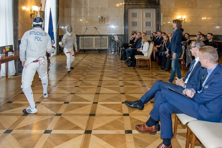 Uroczystość zakończył występ uczniów Ogólnokształcącej Szkoły Muzycznej im. F. Chopina w Bytomiu oraz pokazy szermierki w wykonaniu zawodników AZS AWF Katowice.