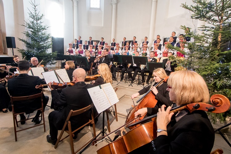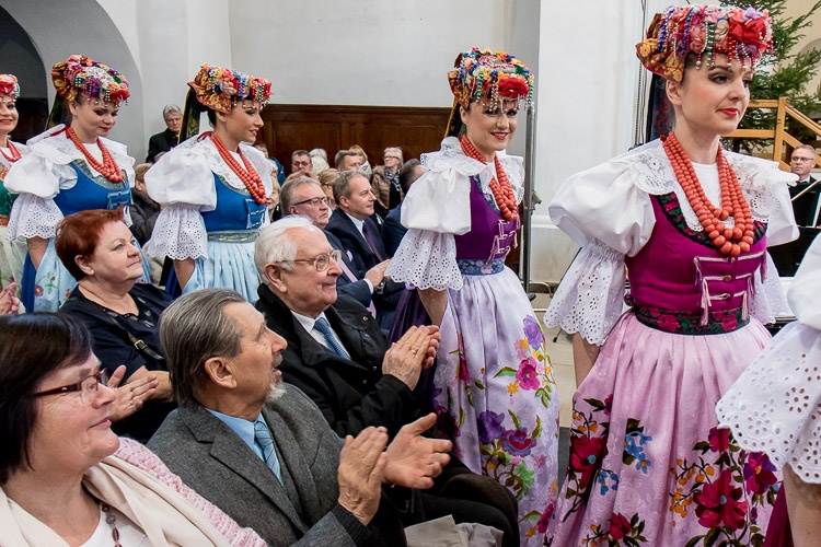 Seniorzy obok świątecznych życzeń mieli okazję wysłuchać koncertu kolęd w wykonaniu Zespołu Pieśni i Tańca „Śląsk” im. Stanisława Hadyny.