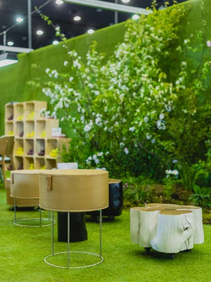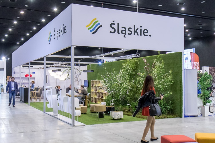 Inspirację dla wystroju stoiska promocyjnego regionu stanowią obszary zielone, które zajmują niemal jedną trzecią powierzchni województwa oraz tradycja „śląskiego domu” wyróżniająca się ciepłem i kojarzoną z mieszkańcami regionu gościnnością.