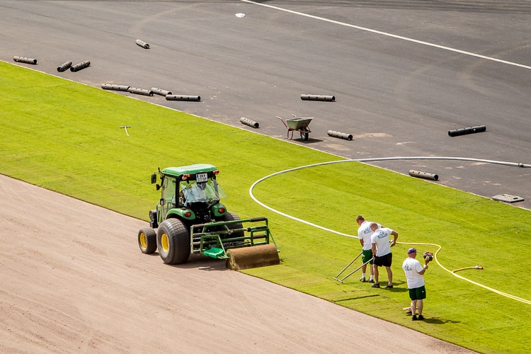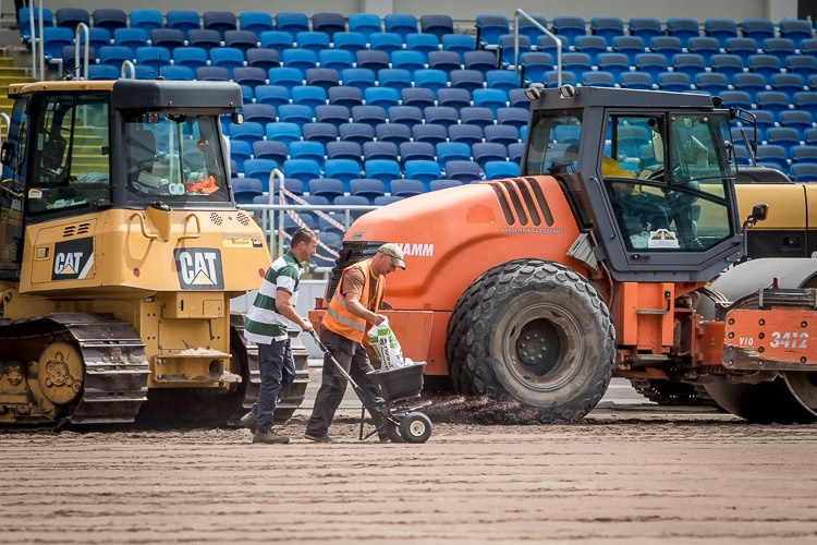 Na arenie głównej Stadionu Śląskiego rozpoczęło się układanie murawy. Cały proces potrwa trzy dni, po nim rozpocznie się montaż bieżni lekkoatletycznej