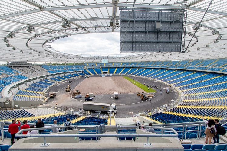 Do końca czerwca zakończą się też prace związane z zagospodarowaniem terenu i wszystkich ciągów komunikacyjnych na stadionie. Układanie bieżni lekkoatletycznej ma natomiast potrwać do końca lipca. Kiedy gotowa będzie bieżnia i murawa, do zakończenia pozostaną już tylko prace wykończeniowe w kubaturze stadionu, w części trybuny wschodniej i w kioskach gastronomicznych na promenadach wokół obiektu.