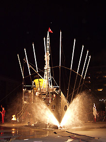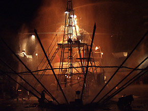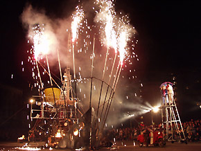 Zgromadzona publiczność cierpliwie czekała aż zapadnie zmrok i rozpocznie się widowisko przygotowane przez niemiecką grupę „Titanick”.