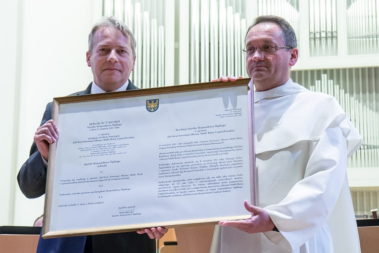 O. Arnold Chrapkowski dziękując, przypomniał o wielkim znaczeniu Jasnej Góry m.in. w naszej historii, w tworzeniu się tożsamości narodowej, w ogromnej maryjności Polaków. „To wszystko wpływa także na kształt naszego regionu, na naszą świadomość, na nasze ludzkie poczynania, na plany, które czynimy, bo nie można tego miejsca wymazać z geografii tego terenu. To miejsce jest głównym ambasadorem i Polski, i naszego regionu, dlatego wyrażam w imieniu całej wspólnoty paulińskiej, nie tylko wspólnoty jasnogórskiej, ale wspólnoty wszystkich domów ojców i braci paulinów serdeczną wdzięczność panu marszałkowi i tym wszystkim, którzy przyczynili się do podjęcia tej uchwały, która jest tylko zewnętrznym wyrazem związku tej ziemi z Jasną Górą i cudownym wizerunkiem Maryi" - mówił o. generał.