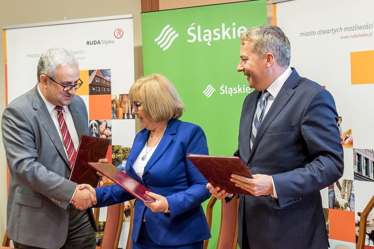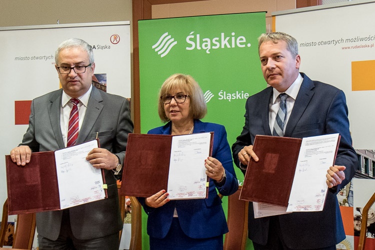 Umowę na dofinansowanie odcinka podpisali marszałek Wojciech Saługa, członek Zarządu Województwa Śląskiego Henryk Mercik oraz Grażyna Dziedzic, prezydent Rudy Śląskiej.