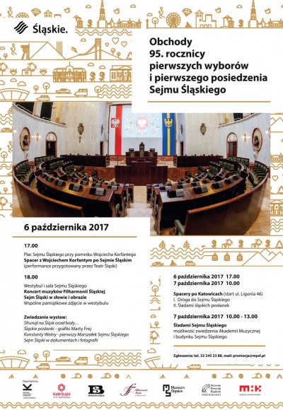 W programie obchodów m.in. spacer z Wojciechem Korfantym po Sejmie Śląskim (atrakcja przygotowana przez Teatr Śląski), koncert muzyków Filharmonii Śląskiej w westybulu Gmachu Sejmu Śląskiego oraz odsłonięcie tablicy informacyjnej o Sejmie Śląskim - wejście od ul. Ligonia 46. 6 i 7 października zorganizowane zostaną dwa spacery po Katowicach - „Droga do Sejmu Śląskiego" oraz „Śladami śląskich posłanek" - start z ul. Ligonia 46.