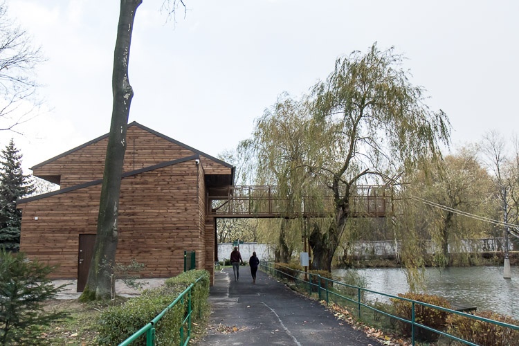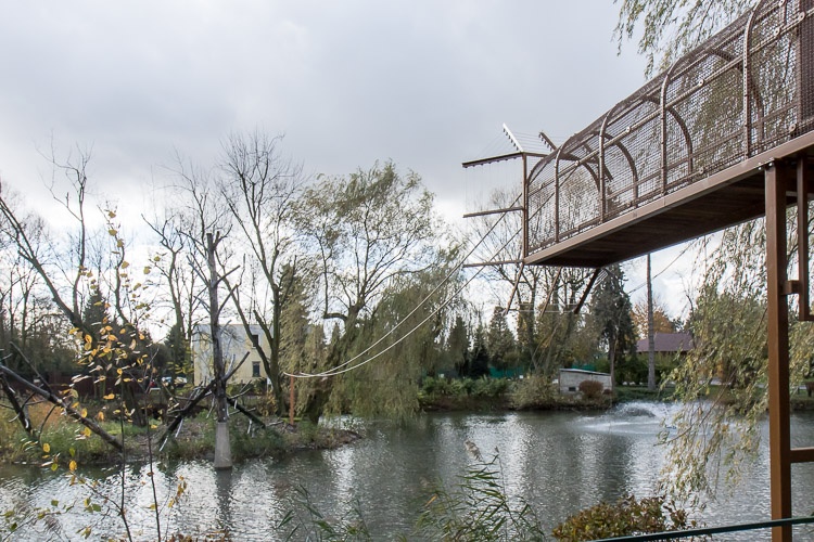Pawilon to obiekt jednokondygnacyjny, wykonany w technologii tradycyjnej, przykryty dachem wielospadowym. Zewnętrzna elewacja wykonana z desek świerkowych. Powierzchnia użytkowa: 86,50 m2, kubatura: 409,1m3. Wysokość maksymalna 7,4 m. W części przeznaczonej dla zwierząt znajdują się naturalne konary drzew oplecione linami umożliwiające przemieszczanie się gibonów wewnątrz obiektu. Budynek jest połączony przepustem nad alejką dla zwiedzających oraz linami nad wodą, które latem umożliwią korzystanie gibonom z wyspy. Zachowania i skoki po linach nowego lokatora będzie można podziwiać przez panoramiczną szybę widokową.