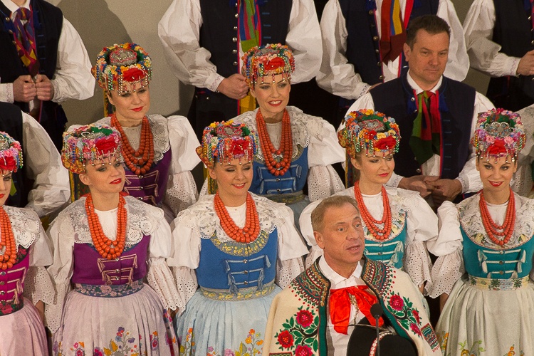 Wojciech Saługa złożył seniorom świąteczne życzenia, a wszyscy uczestnicy spotkania mogli połamać się opłatkiem i wysłuchać koncertu kolęd w wykonaniu Zespołu Pieśni i Tańca „Śląsk” im. Stanisława Hadyny.