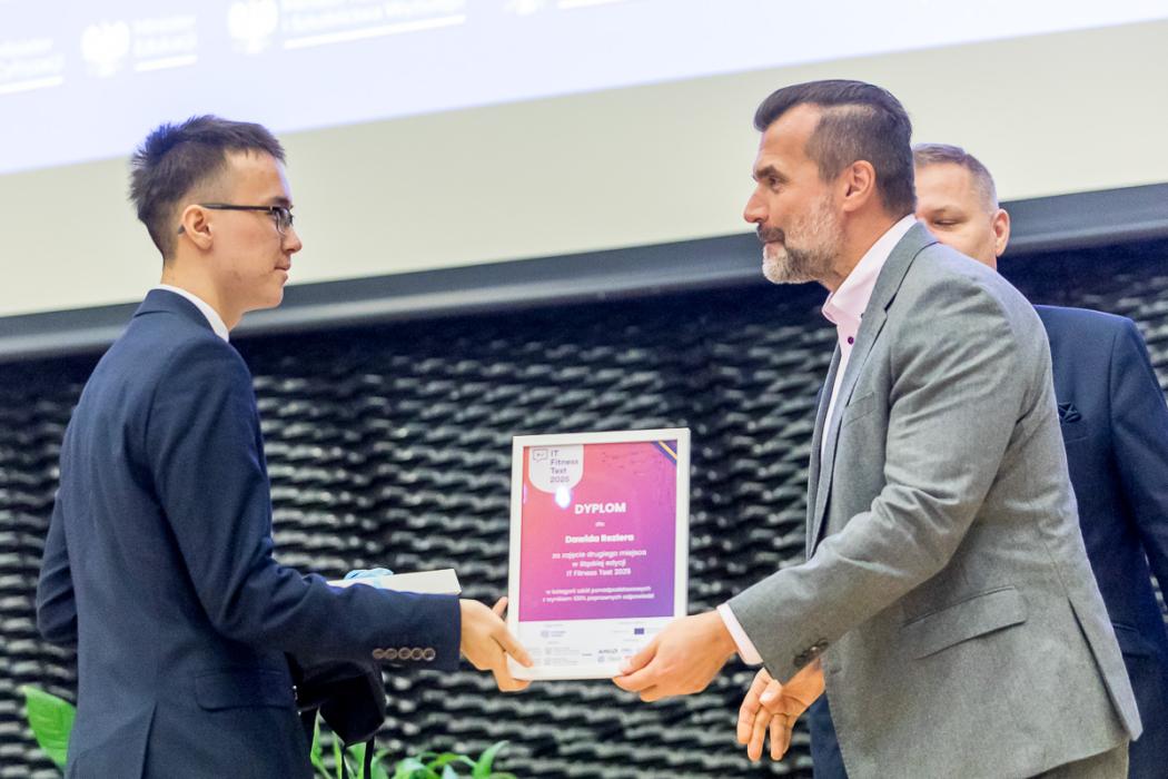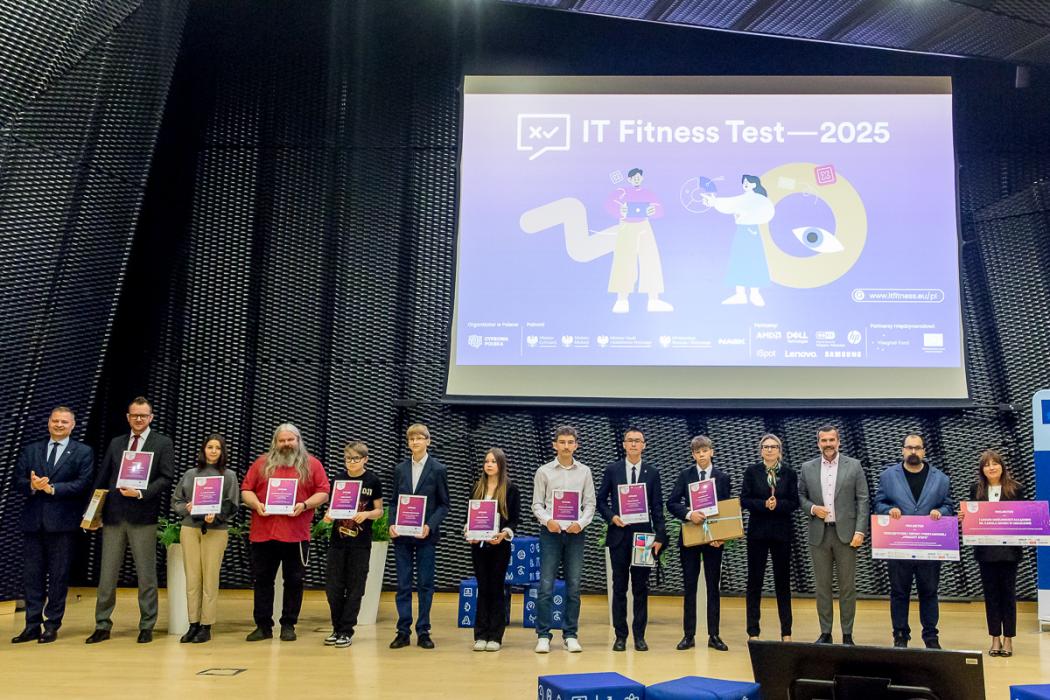 Konferencja była też okazją do wręczenia wyróżnień najlepszym uczestnikom IT Fitness Test 2025 z naszego regionu. W tegorocznej edycji ogólnopolskiego sprawdzianu kompetencji cyfrowych Województwo Śląskie wykazało się wyjątkowo wysoką aktywnością. W szkołach regionu przeprowadzono 9258 testów, z czego 2614 w szkołach podstawowych i 6644 w szkołach średnich. To rekord w skali Polski. Średni wynik w regionie uczniów szkół podstawowych wyniósł 54%, natomiast młodzież ze szkół średnich osiągnęła 55% - powyżej krajowej średniej i z wyraźną poprawą względem ubiegłego roku (w poprzedniej edycji wyniki regionalne wyniosły odpowiednio 47% i 45%).
