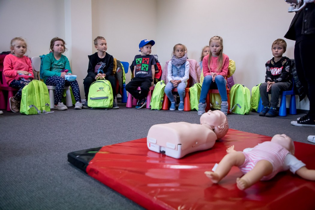 Wicemarszałek Wojciech Kałuża wręczył dzieciom plecaki z elementami odblaskowymi na rowery i odzież w ramach trwającej w województwie akcji WORD pod hasłem „Bezpieczna droga do szkoły”.