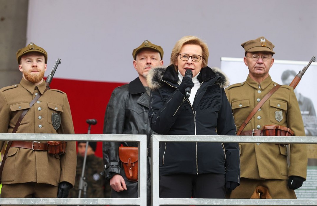 „Dzięki wam pamięć o Żołnierzach Wyklętych jest ciągle żywa, szczególnie teraz, gdy za wschodnią granicą trwa wojna. Żołnierze Niezłomni nie złożyli broni i stanęli do walki o wolną i niepodległą Polskę, jestem dumna, że stajecie do tego biegu, by kultywować pamięć o bohaterach, których poznajemy wreszcie z imienia i nazwiska. Dystans biegu jest symboliczny, te 1963 metry przypominają datę śmierci ostatniego z niezłomnych, Józefa Franczaka ps. „Lalek”. Dzięki wam Armia Wyklęta powraca” – mówiła poseł do Parlamentu Europejskiego, Jadwiga Wiśniewska.
