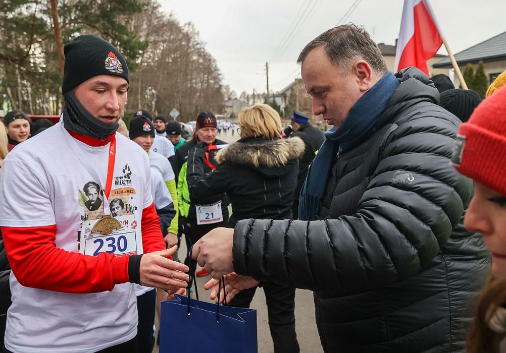 „Walka o wolność i niepodległość nie skończyła się wraz z końcem wojny. Żołnierze Wyklęci stawiali czoła reżimowi komunistycznemu, walcząc w imieniu nas wszystkich o najważniejsze wartości. Naszym obowiązkiem jest pamięć o ludziach, którym zawdzięczamy wolność. Gratuluję poseł do Parlamentu Europejskiego Jadwidze Wiśniewskiej i organizatorom tego wyjątkowego biegu. Łączycie aspekty historyczne i rekreacyjne. Pokazujecie, że bohaterowie walczyli o naszą niepodległość, która nie jest dana raz na zawsze. To szczególnie istotne dzisiaj, gdy znów jesteśmy świadkami działań wojennych za wschodnią granicą. Cieszę się, ze potrafimy troszczyć się o dorobek pokoleń i celebrować nasze wartości na wiele sposobów, a jednym z nich jest właśnie ten wyjątkowy bieg.” – podkreślał marszałek Jakub Chełstowski.