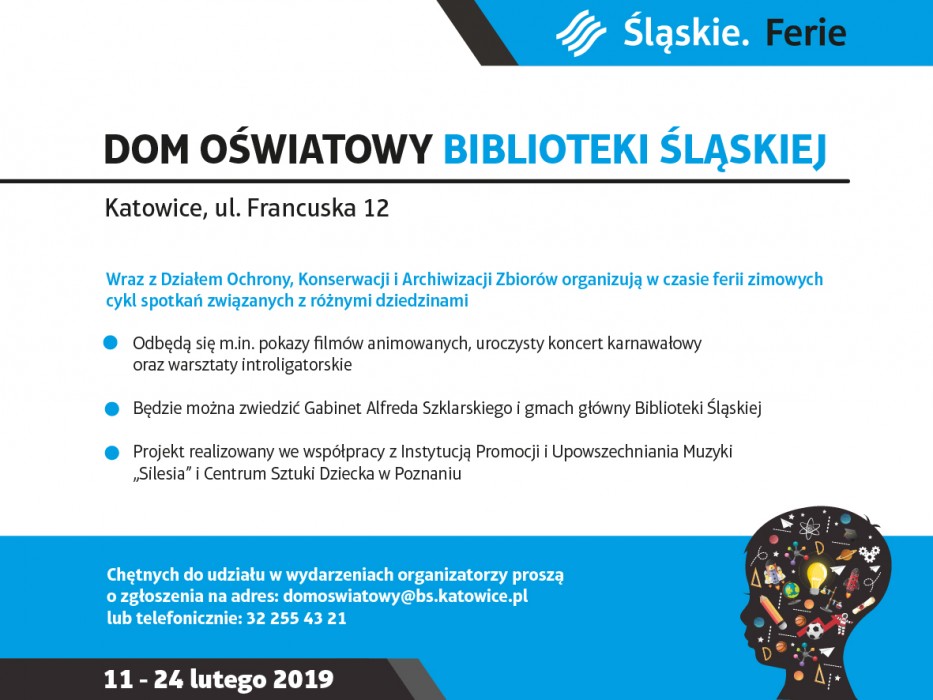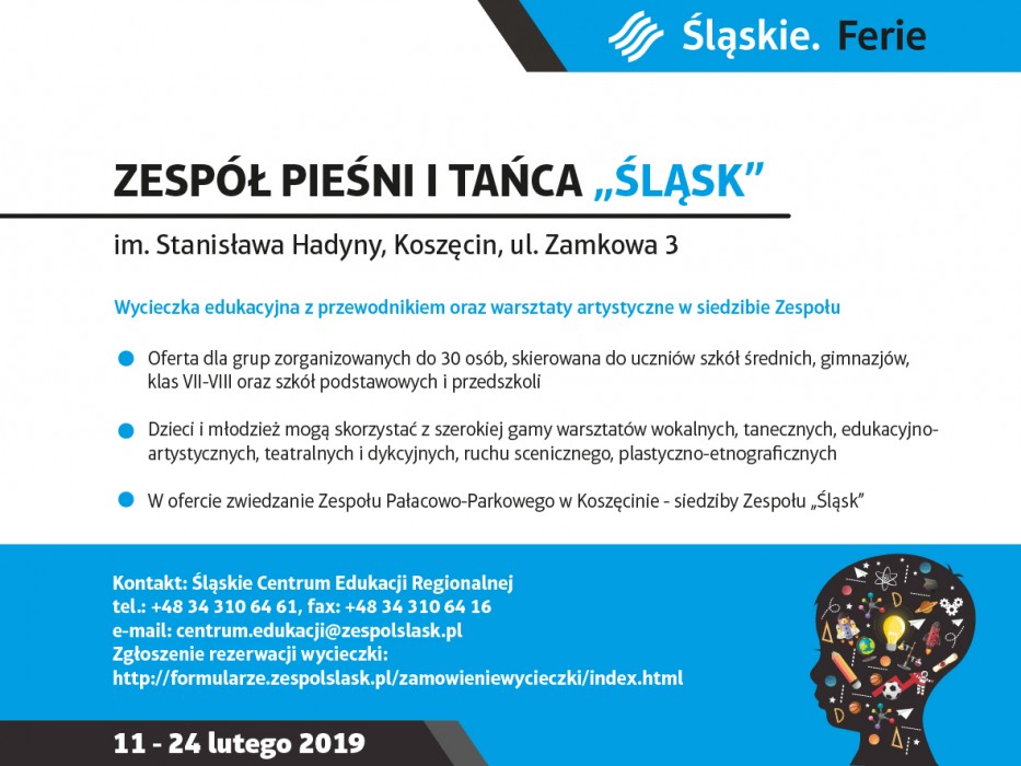 Dzieci i młodzież szkolna z województwa śląskiego w tym roku na ferie czeka dosyć długo. Tym razem rotacyjny termin wyznaczono na ostatnie dwa tygodnie zimowej przerwy od nauki. Instytucje kultury województwa śląskiego zadbają, by czas tych, którzy nie wyjadą poza region, był wypełniony atrakcjami.