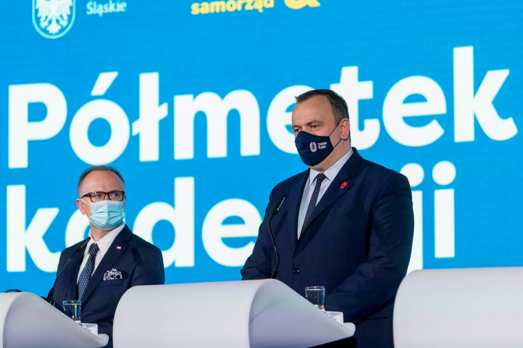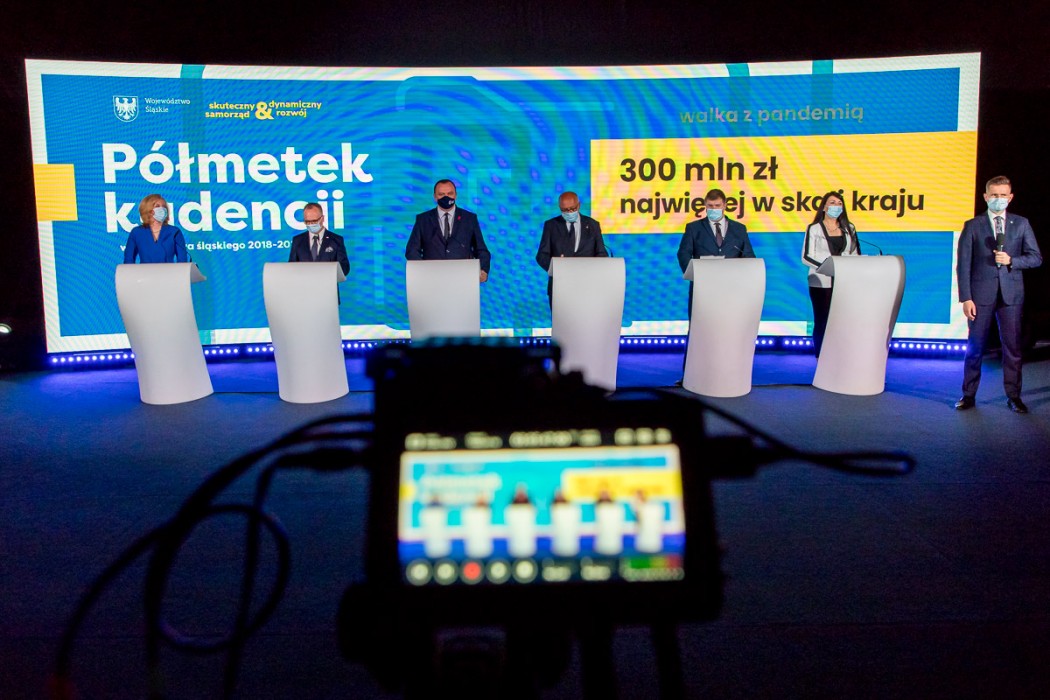 Podczas konferencji na Stadionie Śląskim podsumowano półmetek pracy obecnego Zarządu Województwa Śląskiego. Działania zdeterminowała przede wszystkim walka z COVID-19, na którą do tej pory przeznaczono już 300 mln zł. Ogromne wsparcie otrzymali przedsiębiorcy w postaci Śląskiego Pakietu dla Gospodarki. Pandemia nie zablokowała rozwoju regionu. Wszystkie inwestycje realizowane są zgodnie z planem. Aż 4,4 mld euro trafi do województwa w ramach nowej perspektywy unijnej na lata 2021–2027.