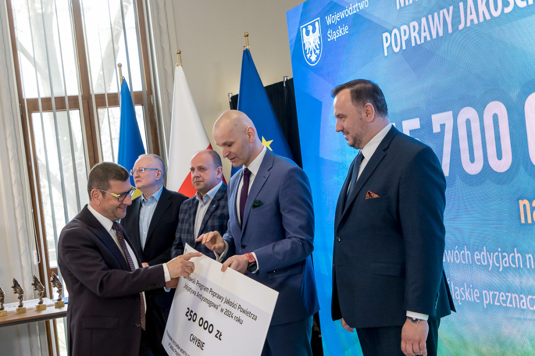 Tym razem do podziału była kwota 15,7 mln zł. Podczas konferencji w Sali Kolumnowej Urzędu Marszałkowskiego Województwa Śląskiego wręczono także czeki na projekty związane z Odnawialnymi Źródłami Energii w sześciu gminach regionu. Tu kwota wyniosła aż 470 mln zł.