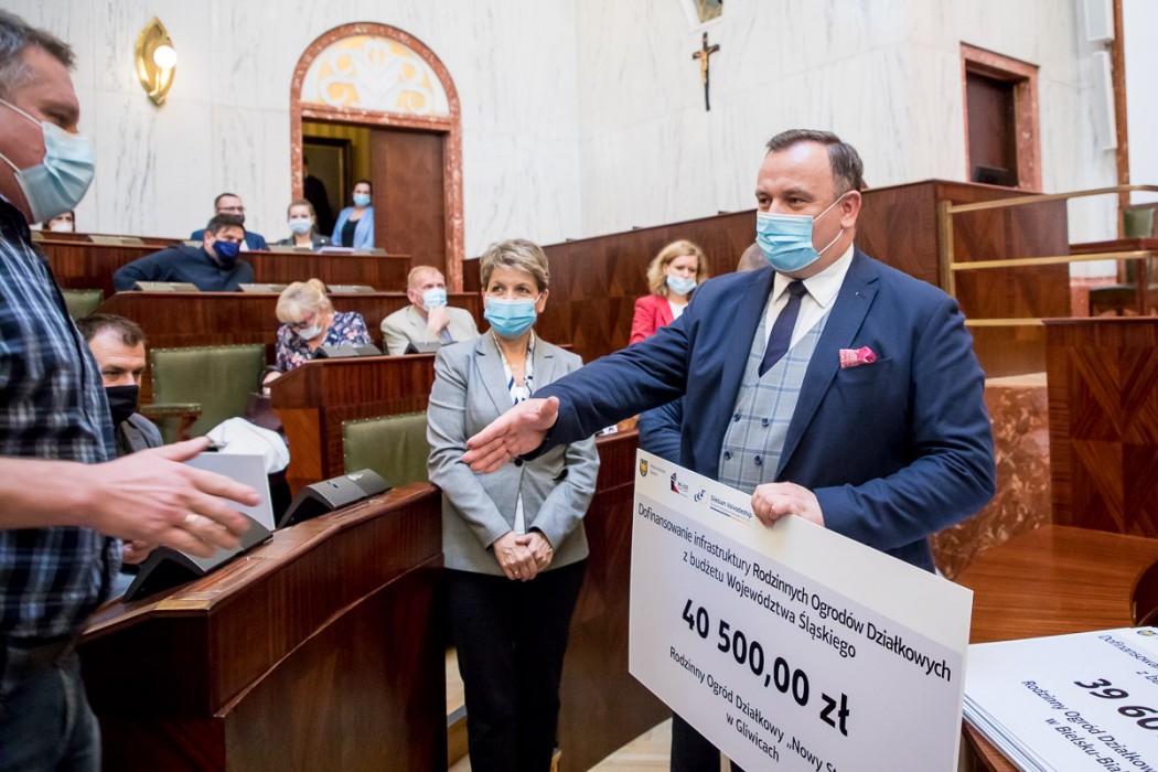 To pierwszy w historii projekt dofinansowania skierowany do stowarzyszeń zrzeszających działkowców. Uroczystość wręczenia symbolicznych czeków z udziałem marszałka województwa odbyła się we wtorek 5 października w Sali Sejmu Śląskiego.