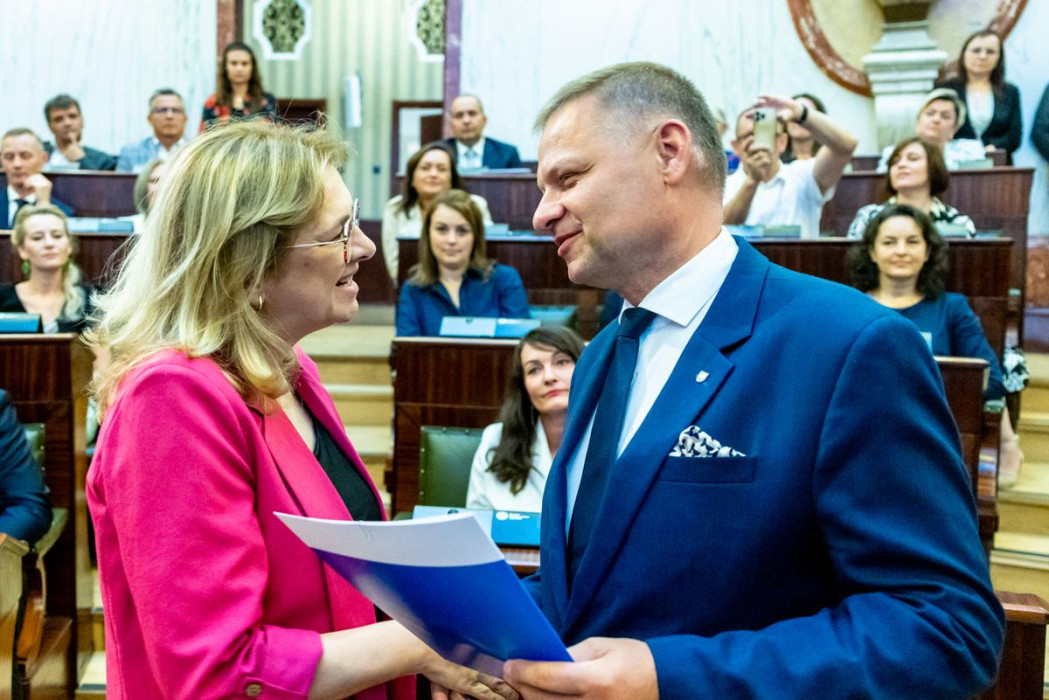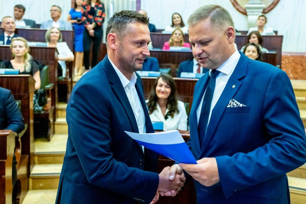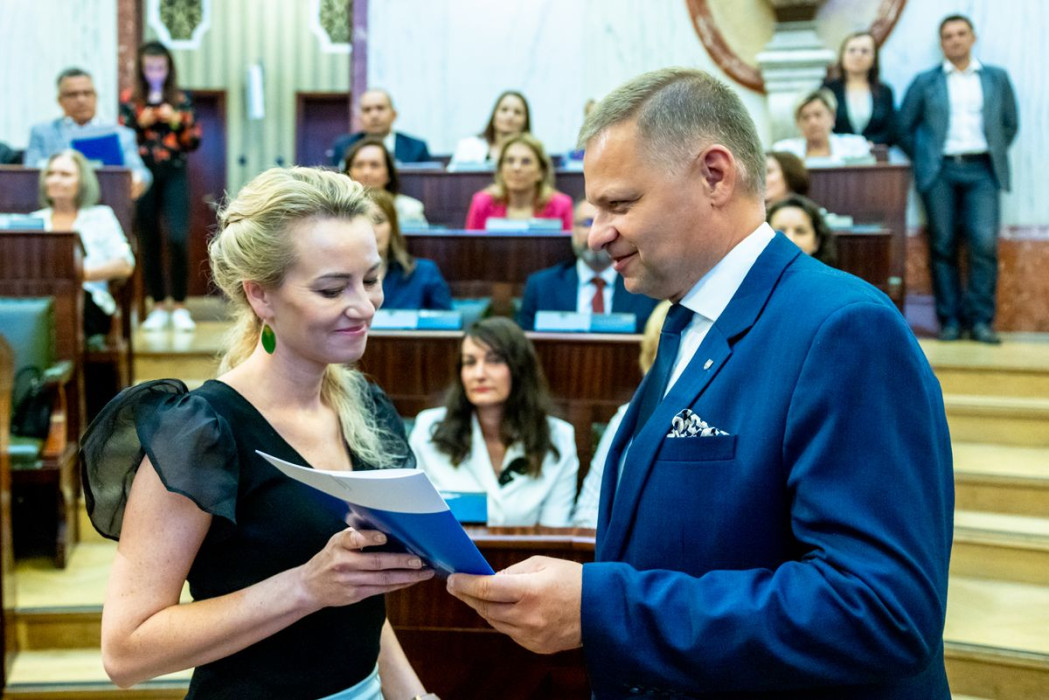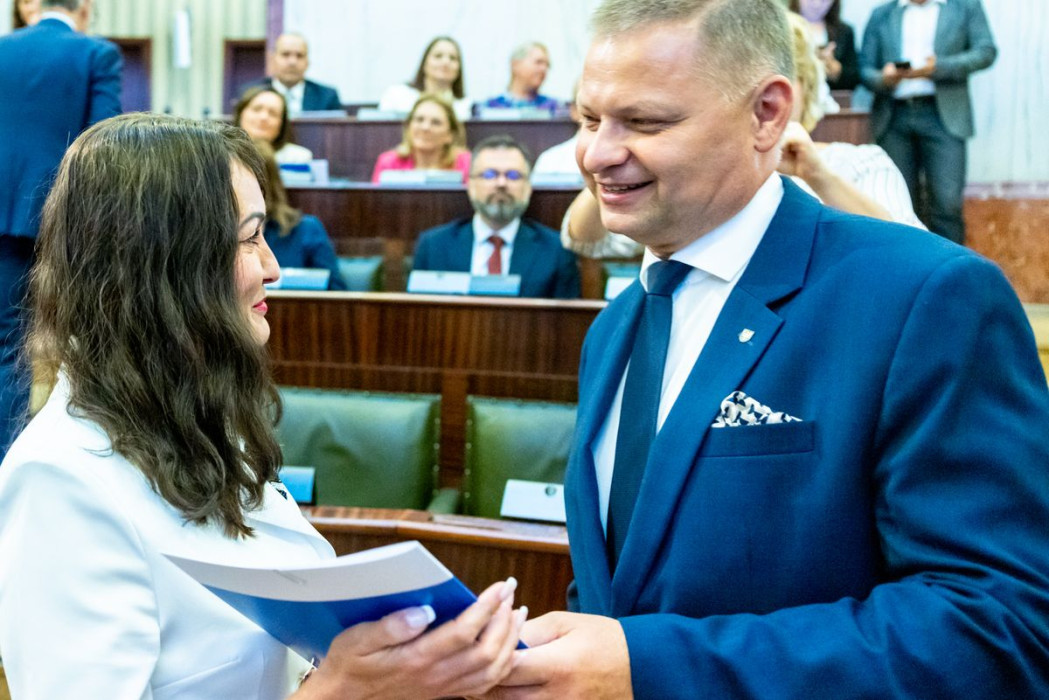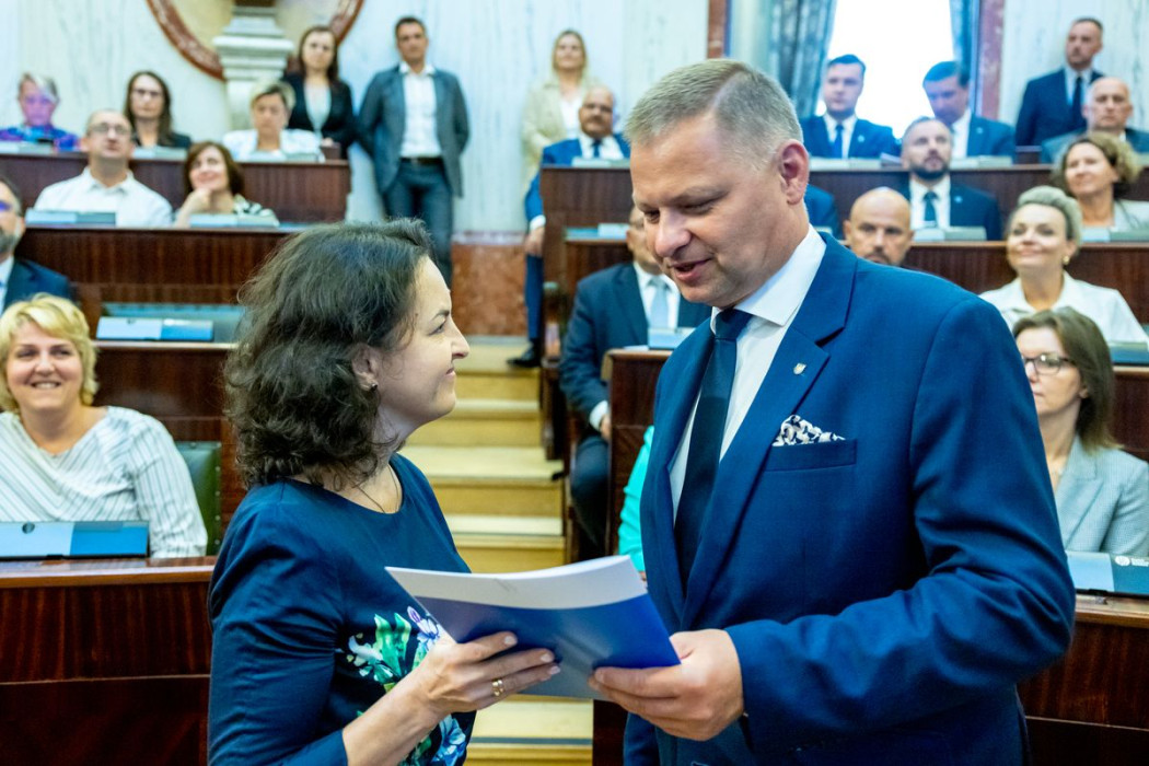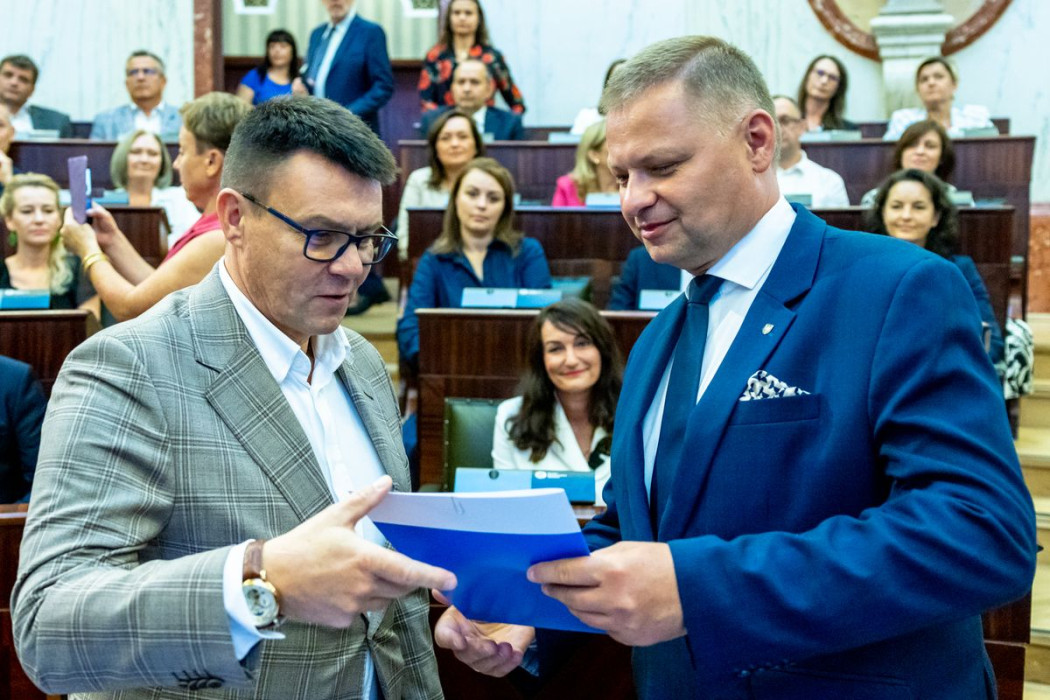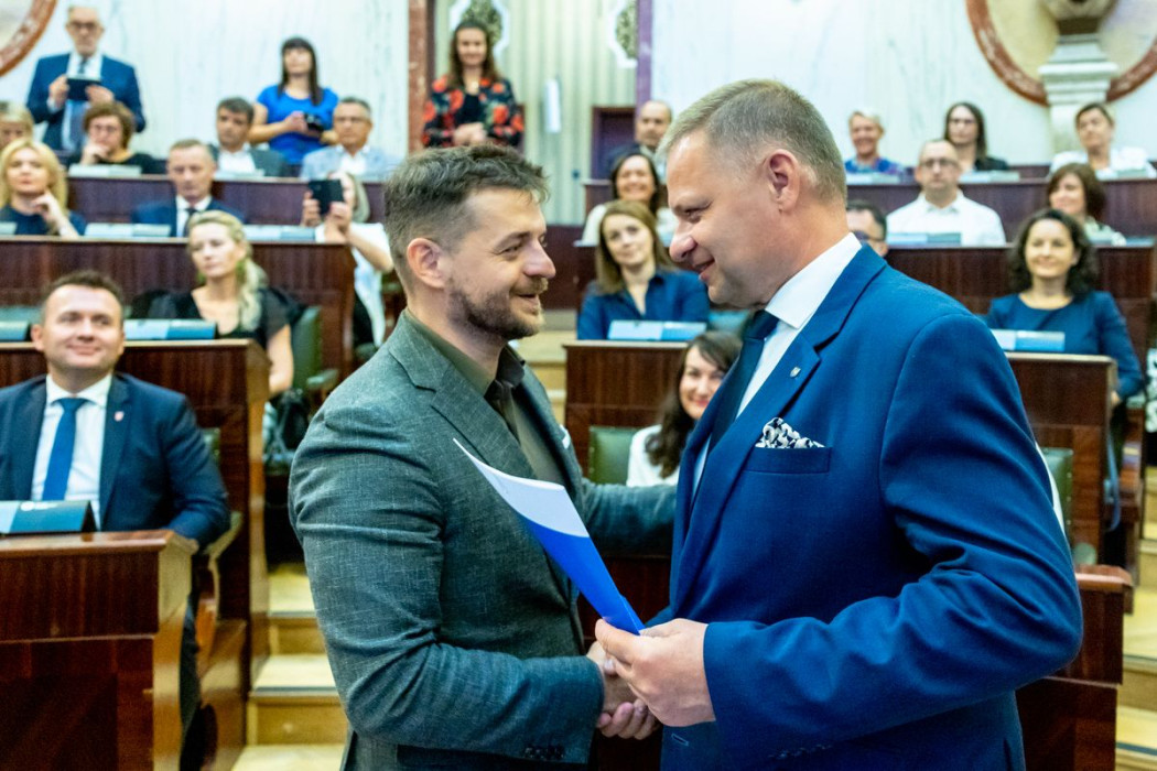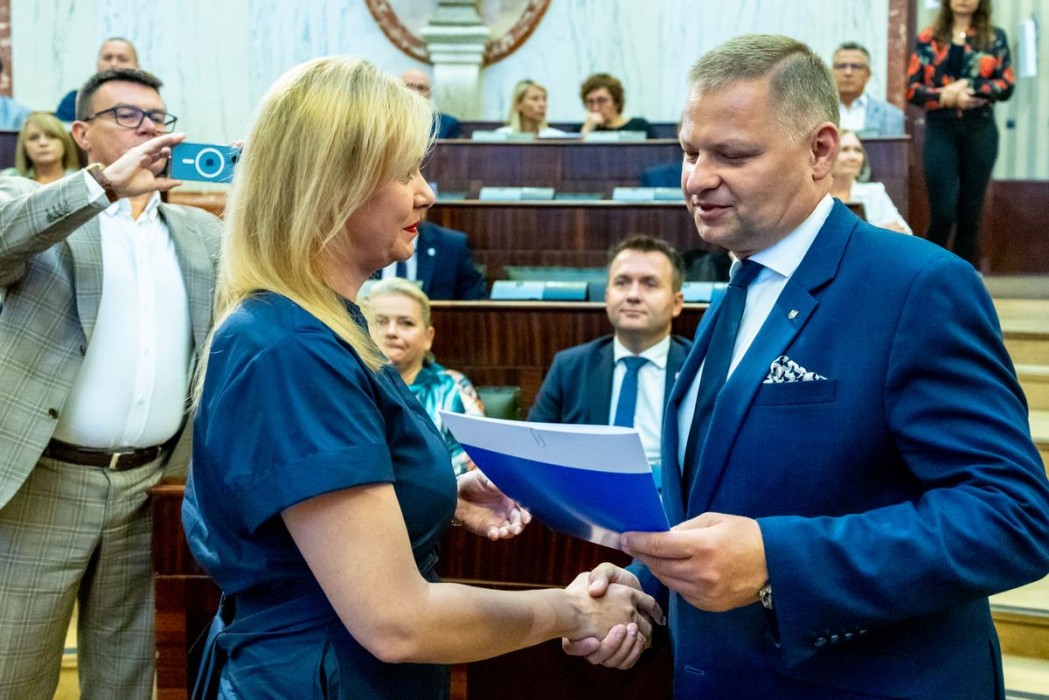 Listy wręczyli: członek Zarządu Województwa Śląskiego Rafał Adamczyk oraz dyrektor Departamentu Europejskiego Funduszu Społecznego Urzędu Marszałkowskiego Województwa Śląskiego Jarosław Wesołowski.