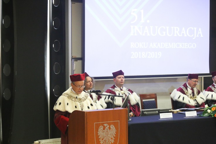 Podczas uroczystości przemówienie inauguracyjne wygłosił rektor UŚ prof. dr hab. Andrzej Kowalczyk, który mówił m.in. o konieczności zmian na uniwersytecie: „Rozpoczynając 51 rok akademicki, otwieramy nowy rozdział w historii naszej uczelni. Uniwersytet Śląski po 50 latach istnienia potrzebuje zmian zarówno strukturalnych, jak i funkcjonalnych. Stajemy w obliczu nowych wyzwań, jakie niesie ze sobą wejście w życie ustawy prawo o szkolnictwie wyższym i nauce. Jest rzeczą niezwykle istotną, abyśmy zastanowili się nad polityką uniwersytetu dotycząca poszczególnych obszarów naszej aktywności: badań naukowych, kształcenia, mobilności i ich umiędzynarodowienia. Konieczna będzie zmiana struktury uczelni, wzmocnienie infrastruktury dydaktyczno- badawczej i przeobrażenie zarządzania uczelnią. Przede wszystkim jednak wyłania się potrzeba uwspólniania bardzo wielu działań i obszarów w naszym uniwersytecie”.