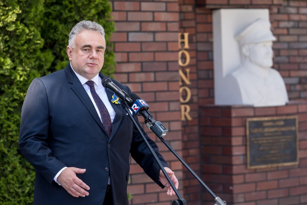 - Cieszę się z dzisiejszej uroczystości, bo przywraca pamięć o tych, którzy zapisali się w historii Polski złotymi zgłoskami – mówił marszałek Jakub Chełstowski. - Postaci takie, jak generał Tadeusz Rozwadowski występują na kartach historii w gronie ważnych postaci historycznych, ale ich pomniki są dla nas również bardzo ważne. Zawłaszcza dzisiaj, w momencie inwazji rosyjskiej na Ukrainę, przywoływanie postaci takiego formatu jasno pokazuje kierunki działania i postawy budujące poczucie bezpieczeństwa w kraju i społeczeństwie. Generał Rozwadowski dawał wielokrotnie swoim życiem przykład takiego postępowania. Jego życiorys to wielka lekcja historii, patriotyzmu i motywacji do działań na rzecz Polski suwerennej i niepodległej, z mocnymi siłami zbrojnymi. Tacy bohaterowie z przeszłości powinni być dla nas wzorem. Dzisiejsza uroczystość powiązana jest piękną kartą historii – Powstaniami Śląskimi, które również unaoczniają jak ważne jest poczucie tożsamości narodowej, przywiązanie do Ojczyzny. Jesteśmy w przededniu pierwszych w historii obchodów Narodowego Dnia Powstań Śląskich, które świetnie się wpisują w powrót Śląska do Macierzy po sześciu wiekach niebytu i oderwania. To kolejny dowód, że polityka historyczna wróciła na właściwe tory i w jej ramach przypominamy nie tylko powstańców, ale także inne ważne postaci, które tworzyły i kształtowały II Rzeczpospolitą.
