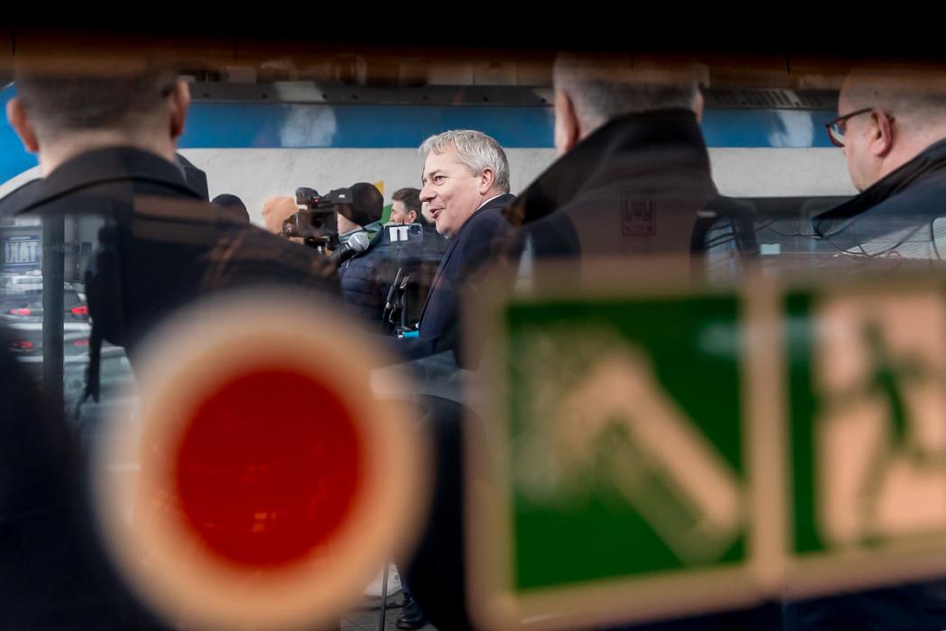 Pociąg Impuls 2 firmy Newag S.A. Na zdjęciu marszałek Wojciech Saługa. Prezentacja pociągu Impuls 2 Kolei Śląskich. fot. Tomasz Żak / UMWŚ