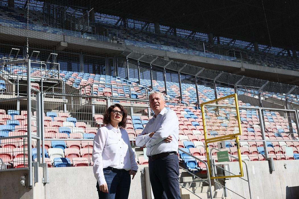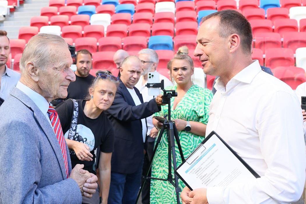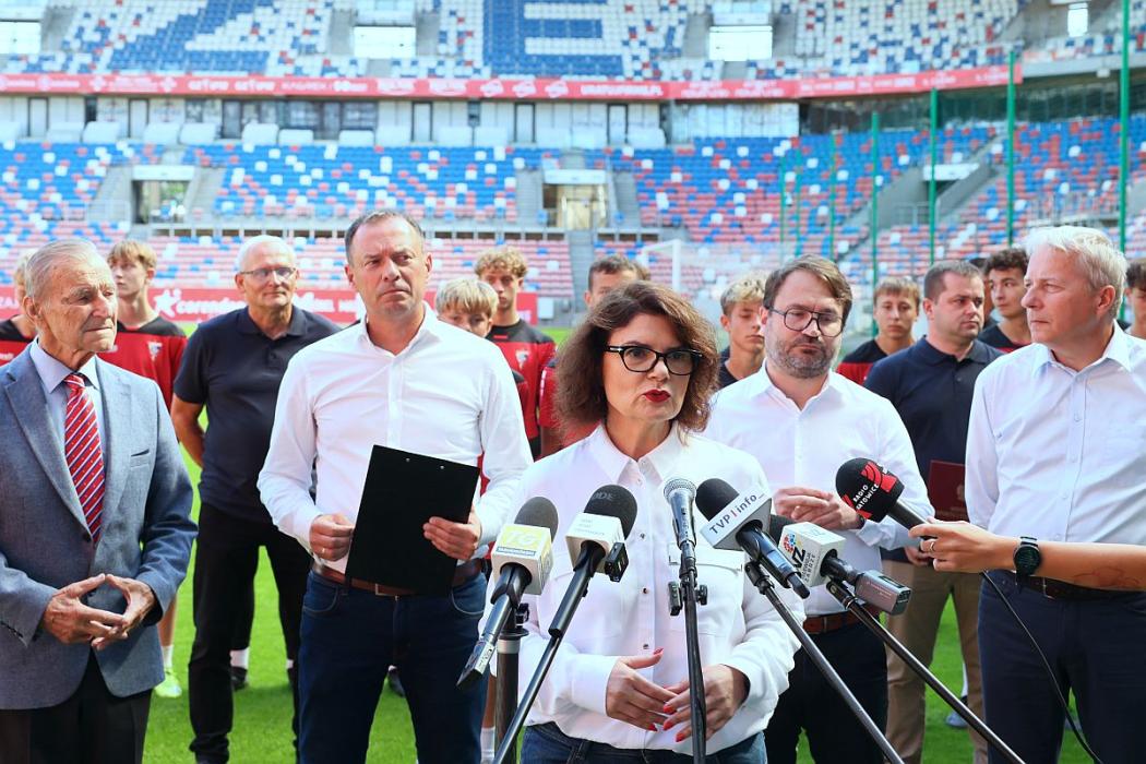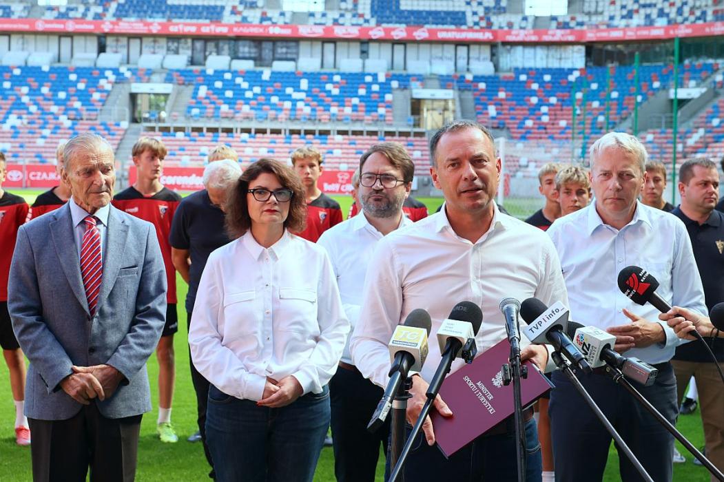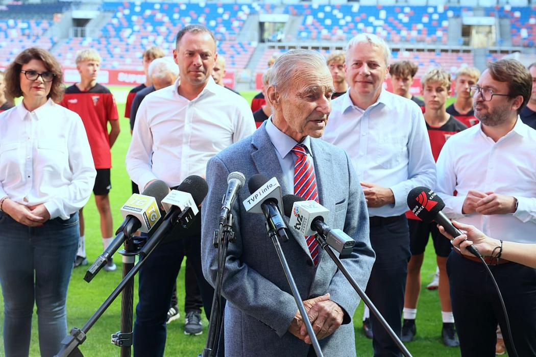 W konferencji odbywającej się na murawie Górnika Zabrze uczestniczyli: Piotr Borys, sekretarz stanu w Ministerstwie Sportu i Turystyki, marszałek Wojciech Saługa, Ewa Weber pełniąca funkcję prezydenta Zabrza, Maciej Kolon radny Sejmiku Województwa Śląskiego i Stanisław Oźlizło, legenda Górnika Zabrze.