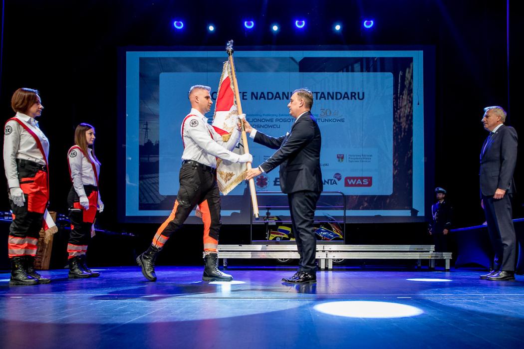 Najważniejszym punktem uroczystości była ceremonia nadania sztandaru dla sosnowieckiego pogotowia przez marszałka Województwa Śląskiego, Wojciecha Saługę.