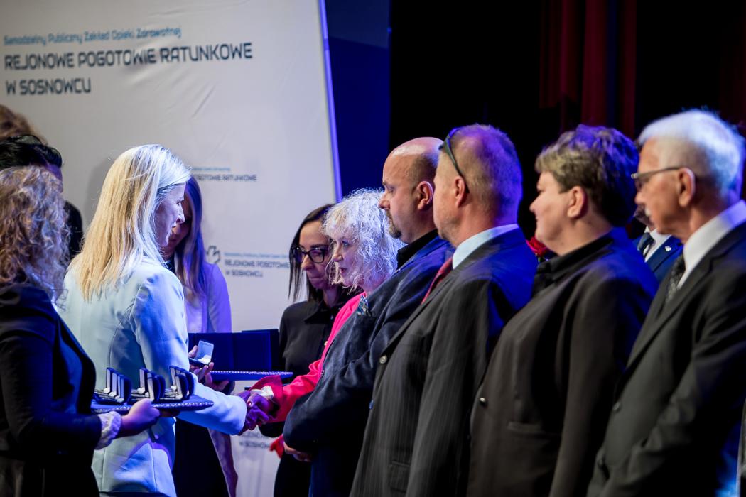 W trakcie uroczystej gali wręczono wieloletnim pracownikom pogotowia odznaczenia. Radne Sejmiku Województwa Śląskiego – Aldona Węgrzynowicz i Aleksandra Poloczek wręczyły także Odznaki Honorowe za Zasługi dla Województwa Śląskiego.