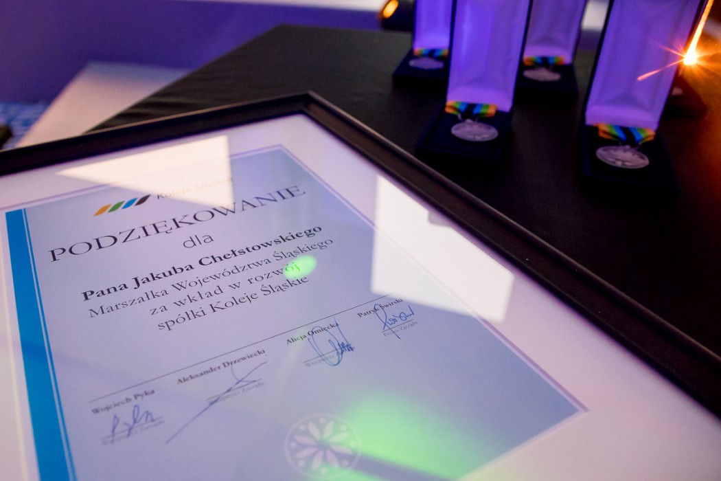 - Każdą firmę, każdy zakład pracy tworzą ludzie. To im należą się podziękowania za pracę, którą wykonują. Koleje Śląskie to ważne ogniwo transportu publicznego. Codziennie z ich usług korzystają dziesiątki tysięcy mieszkańców regionu, dojeżdżając do pracy, uczelni i szkół. Docierają na miejsce w szybki, bezpieczny i komfortowy sposób. W 2019 roku, jeszcze przed wybuchem pandemii przewiozły aż 20 milionów pasażerów. Przez dekadę było to 150 milionów pasażerów. Liczba naprawdę imponująca. Cały czas poszerzana jest także oferta Kolei, czego przykładem jest uruchomienie w ubiegłym roku połączenia Katowice-Kraków. W budżecie województwa na 2021 rok zapisano 182 mln zł na organizowanie i dotowanie regionalnych kolejowych przewozów pasażerskich wykonywanych przez spółki POLREGIO i Koleje Śląskie. Celem jest stałe podnoszenie komfortu jazdy i dostępność transportu kolejowego, stąd nowa, jeszcze atrakcyjniejsza oferta przewozowa. Zależy nam, aby transport kolejowy stawał się dla pasażerów pierwszym wyborem. Poza tym podróż koleją ma także wymiar ekologiczny. Przesiadając się z samochodu do pociągu każdy z nas ma swój mały wkład w kwestię poprawy stanu środowiska naturalnego – mówi marszałek województwa, Jakub Chełstowski.