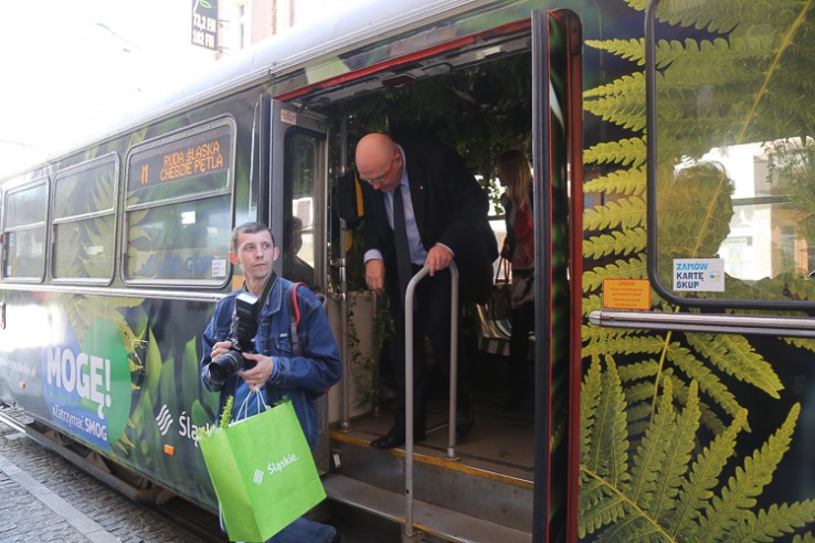 „Województwo śląskie ma prawo do błękitnego nieba, a jego mieszkańcy do oddychania czystym i świeżym powietrzem. Jesteśmy drugim województwem, który przyjęło uchwałę antysmogową. Zagrożenie smogowe rośnie zwłaszcza o tej porze roku, a smog związany jest też z naszymi codziennymi wyborami. Dlatego prowadzimy akcję edukacyjną i zachęcamy mieszkańców do częstszego korzystania komunikacji miejskiej. Apelujemy też do rządu, aby wycofał z rynku złe paliwa, które stanowią główne źródło zagrożenia smogowego. Ostatnio zostało wprawdzie podpisane rozporządzenie, które zakazuje stosowania toksycznych paliw, ale czas obowiązywania tego rozporządzenia został odsunięty o 2 lata” – powiedział Michał Gramatyka, wicemarszałek województwa śląskiego, który wyruszył w jeden z pierwszych kursów niezwykłym pojazdem.