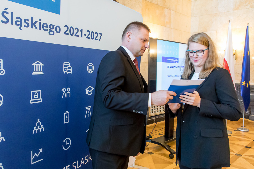 W Gmachu Sejmu Śląskiego wręczono listy gratulacyjne beneficjentom, którzy uzyskali dofinansowanie ze środków Europejskiego Funduszu Społecznego w ramach Programu Fundusze Europejskie dla Śląskiego na lata 2021-2027 dla działania 07.02 Aktywna Integracja.
