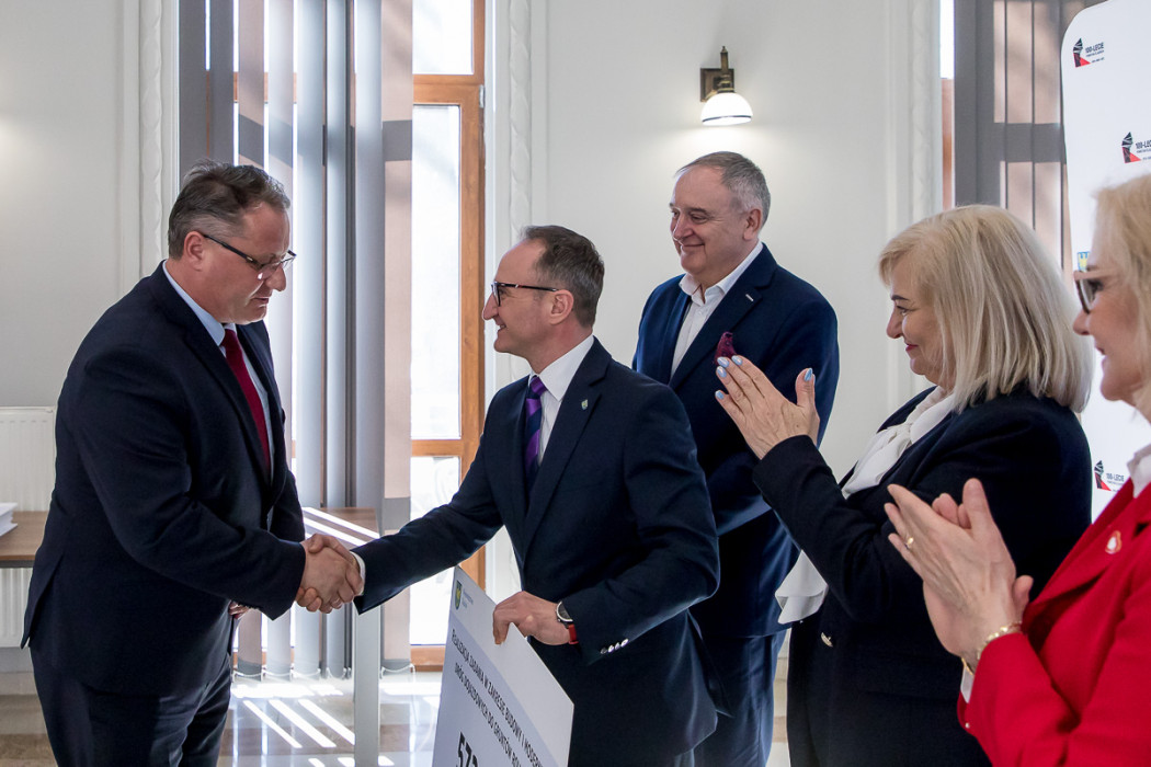 W uroczystym wręczeniu symbolicznych czeków przedstawicielom gmin wzięli udział członek Zarządu Grzegorz Boski, wiceprzewodnicząca Sejmiku Urszula Koszutska oraz radni Alina Bednarz i Marek Bieniek.
