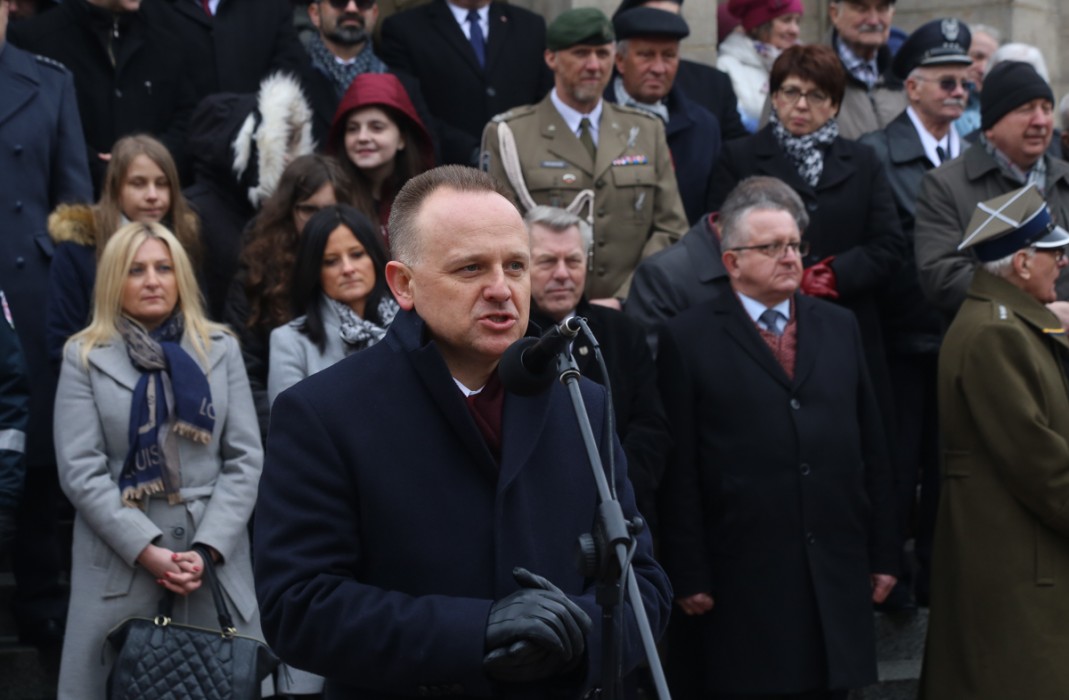 „Już po raz 9 mamy okazję obchodzić Narodowy Dzień Pamięci o Żołnierzach Wyklętych. Kiedy kończyła się okupacja niemiecka, nie wszyscy rozumieli, że to nie oznacza wolności. Że tym samym rozpoczyna się okupacja sowiecka. I z takim porządkiem rzeczy postanawiają walczyć żołnierze polscy – dzisiaj nazywani Żołnierzami Wyklętymi. Siły wroga były przytłaczające. Walczący o swoją Ojczyznę poddawani byli prześladowaniom i aresztowaniom. Potem przez kilkadziesiąt lat pamięć o nich zabijali komuniści. Dopiero teraz, w naprawdę niepodległej Polsce ta pamięć wraca” – zwrócił się do obecnych wicemarszałek województwa śląskiego.