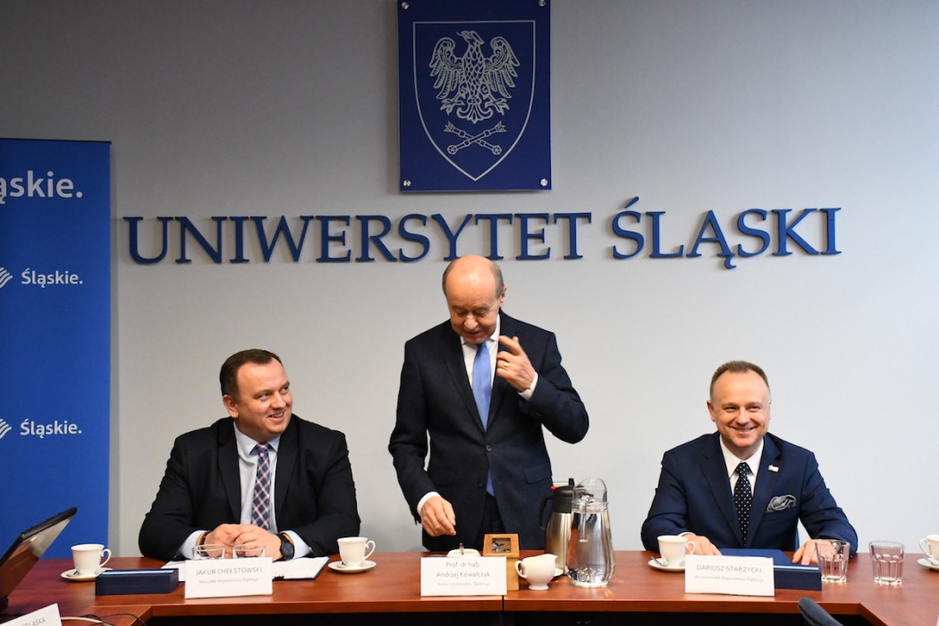 W uroczystym podpisaniu umowy uczestniczył marszałek Jakub Chełstowski, wicemarszałek Dariusz Starzycki oraz rektor Uniwersytetu Śląskiego, prof. Andrzej Kowalczyk.