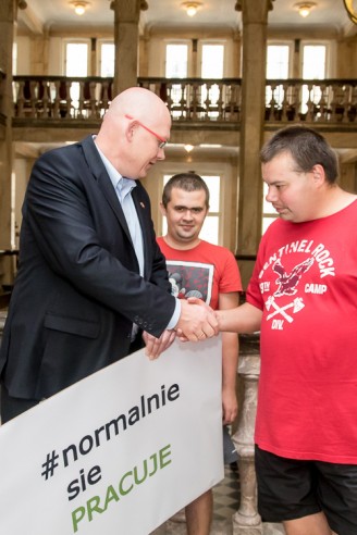 Wicemarszałek Michał Gramatyka włączył się w akcję #normalniesiePRACUJE. Inicjatywa została podjęta przez Centrum Doradztwa Zawodowego i Wspierania Osób z Niepełnosprawnością Intelektualną (Centrum DZWONI) w Bytomiu działające w ramach Polskiego Stowarzyszenia na Rzecz Osób z Niepełnosprawnością Intelektualną.
